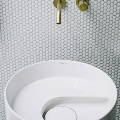De Laufen Volta-waskom oogt wat bevreemdend door haar niveauverschillen. Maar als de kraan aan gaat en het water sierlijk, als een meanderende rivier, haar weg vindt naar beneden, maakt de verwondering plaats voor her-kenning. Het roept associaties op van een stromende rivier die uitmondt in een verborgen poeltje.